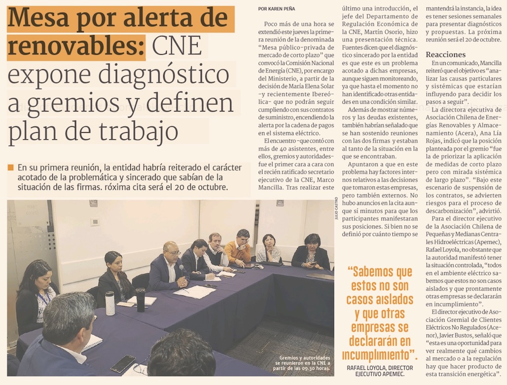 Se inicia mesa de trabajo por renovables en insolvencia - (El Mercurio de Santiago)