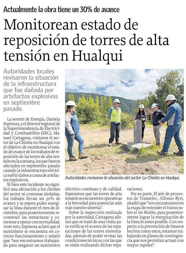 Díaz tilda de "grosero" plazo de 90 días para reposición de línea de transmisión atacada en Hualqui - (biobiochile online)