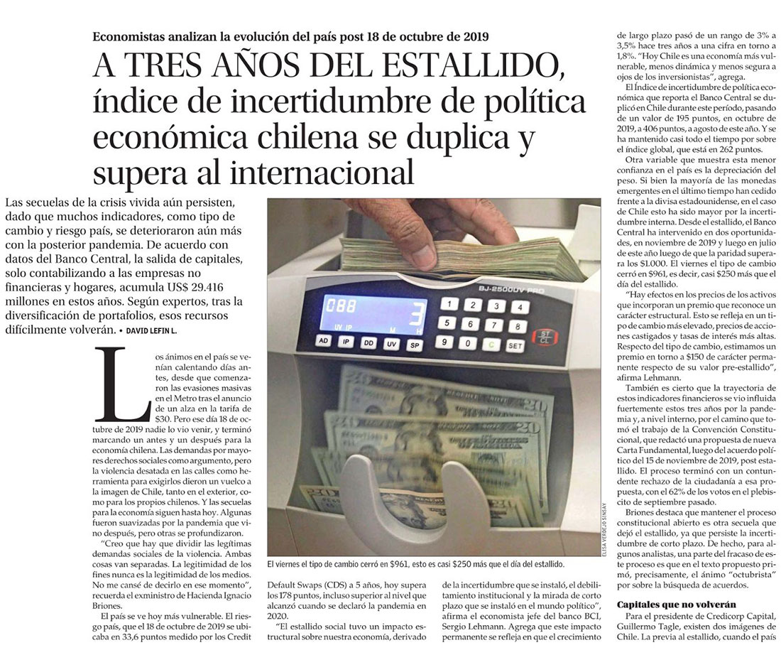 Riesgo país de Chile acelera su escalada y llega a su mayor nivel desde la crisis subprime - (Pulso)