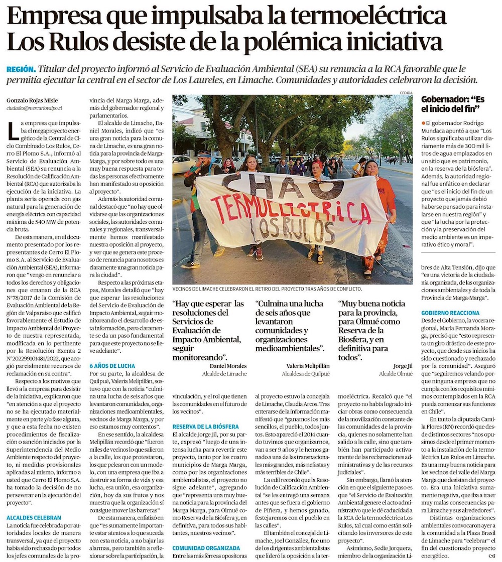 Renuncian a proyecto de central a gas por US$600 millones - (El Mercurio de Santiago)