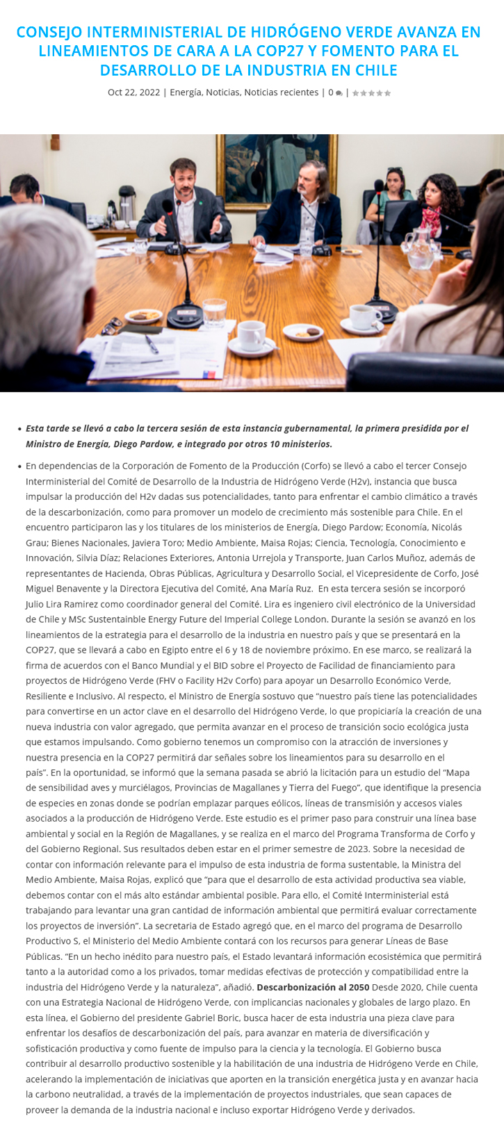 Consejo Interministerial de Hidrógeno Verde avanza en lineamientos de cara a la COP27 - (electromov.cl)