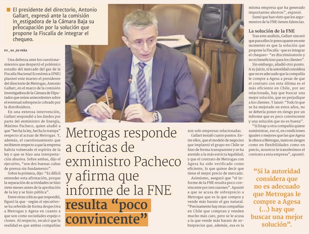 Metrogas se defiende y asegura que informe de la FNE es “poco convincente” - (El Mercurio de Santiago)