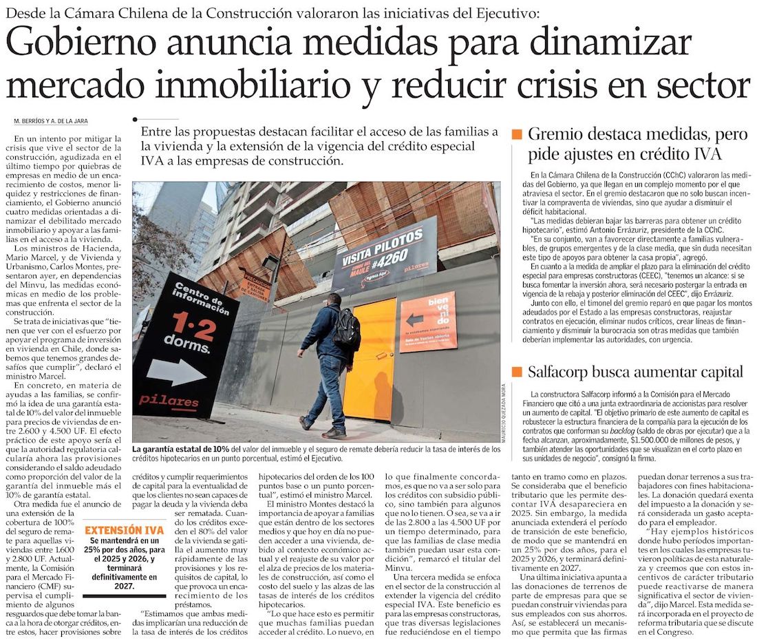 Hacienda y Vivienda anuncian cuatro medidas para apoyar a la Construcción - (La Segunda)