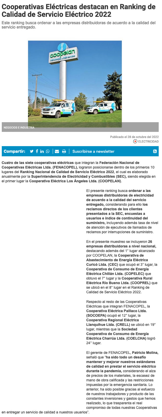 Cooperativas eléctricas se imponen en ranking de calidad de servicio eléctrico - (La Discusión)
