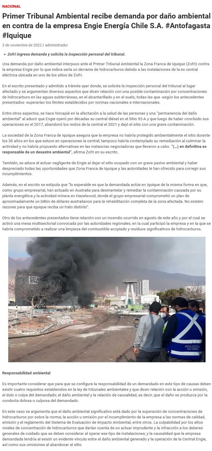 Primer Tribunal Ambiental recibe demanda por daño ambiental en contra de la empresa Engie Energía Chile S.A. - (elreporterodeiquique)