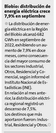 Distribución de energía eléctrica del Biobío aumentó 7,9% en septiembre - (La Tribuna)
