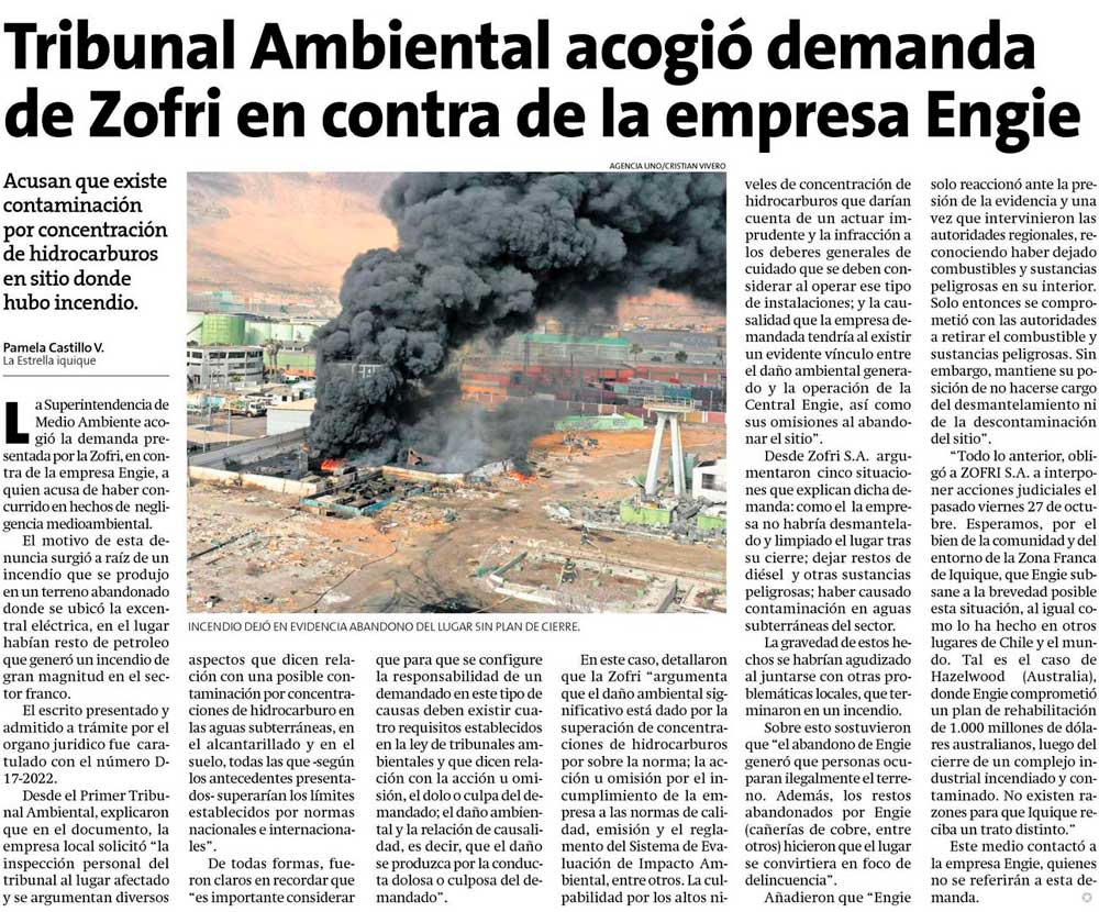 Zofri S.A. detalla porqué demandó civil y ambientalmente a Engie Chile - (El Longino de Iquique)