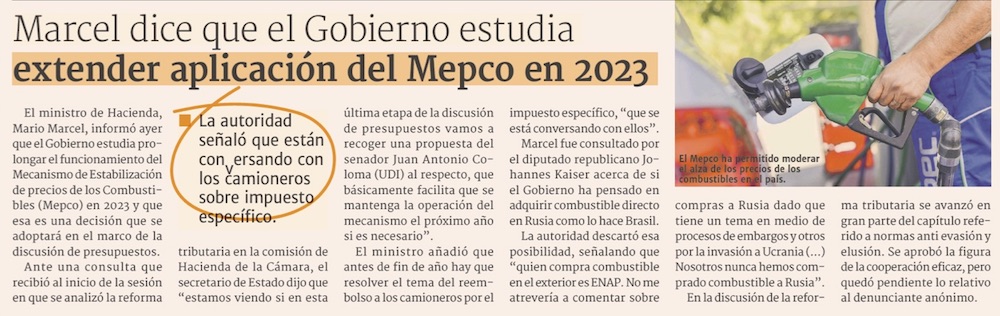 Hacienda analiza extender entrega de subsidios del Mepco hacia 2023 - (El Mercurio de Santiago)