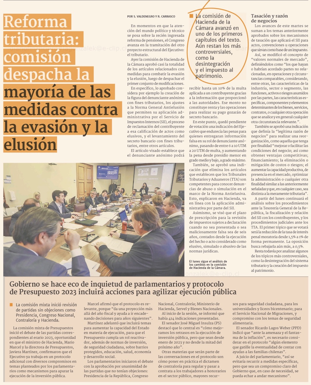 Comisión de Hacienda aprueba normas de elusión y evasión, pero denunciante anónimo queda pendiente - (Pulso)