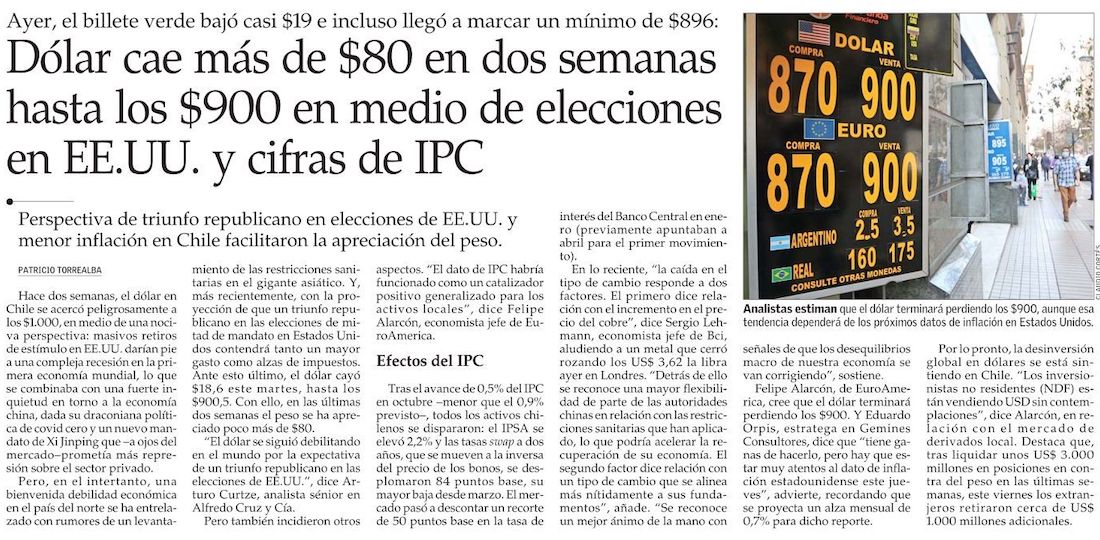 Dólar sigue perdiendo terreno y desafía barrera de los $900 en medio de menor IPC y alza del cobre - (Pulso)