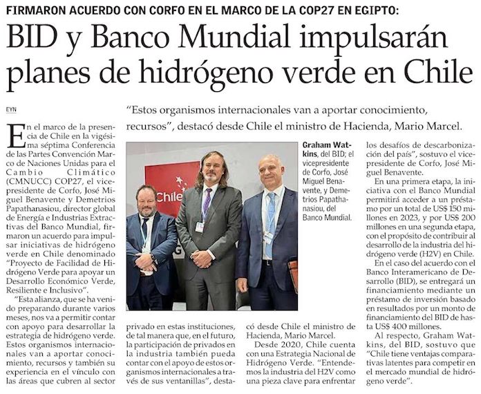 COP27: Gobierno firma acuerdos con el BID y el Banco Mundial para impulsar proyectos de Hidrógeno Verde - (DF Online)