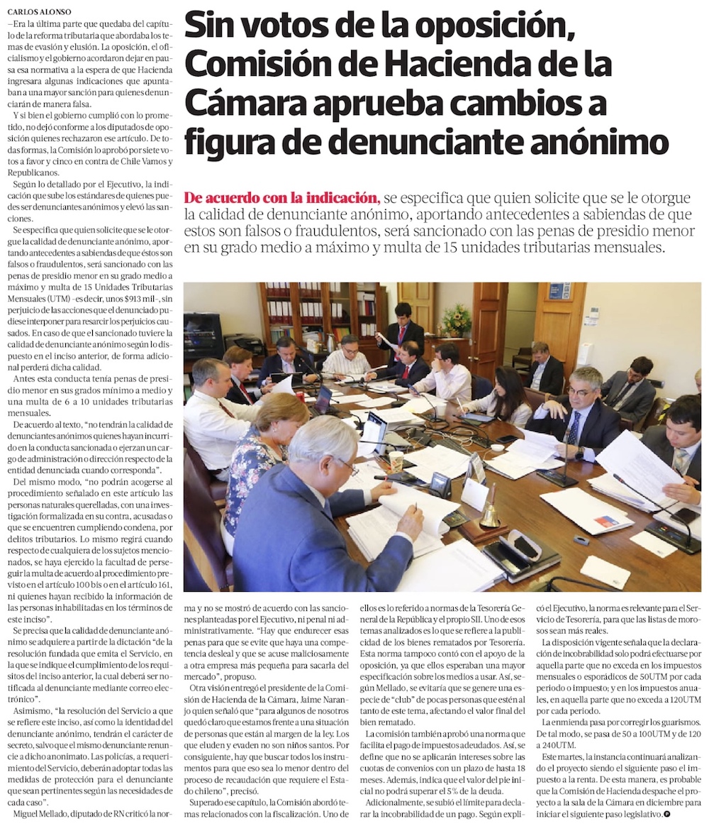Reforma tributaria: Gobierno eleva penas para evitar acusaciones falsas del denunciante anónimo - (Diario Financiero)
