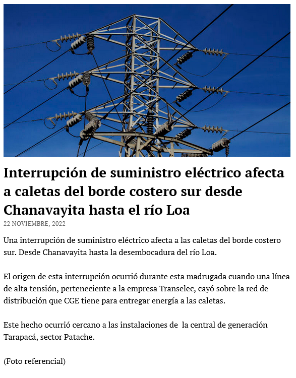 Corte de energía afecta a vecinos de las caletas del borde costero en Iquique - (soyiquique)