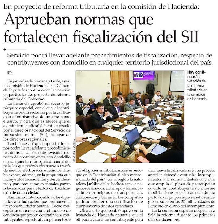 Comisión aprueba que el SII fiscalice a contribuyentes en otros territorios - (Diario Financiero)