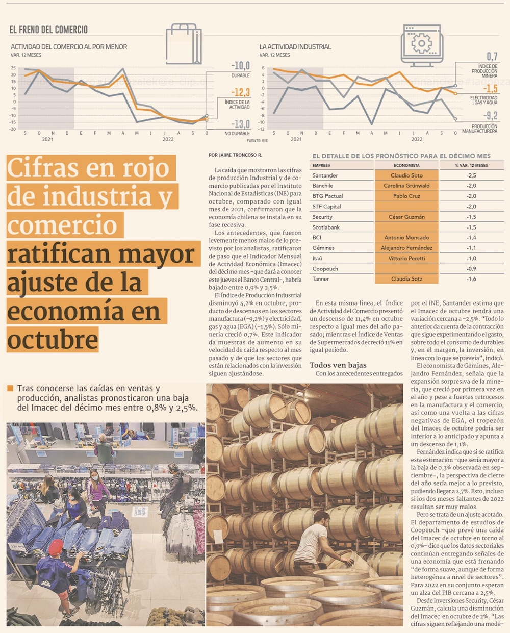 Tras fuerte derrumbe del comercio y manufacturas, economistas ven que Imacec de octubre sería el peor desde febrero de 2021 - (Pulso)