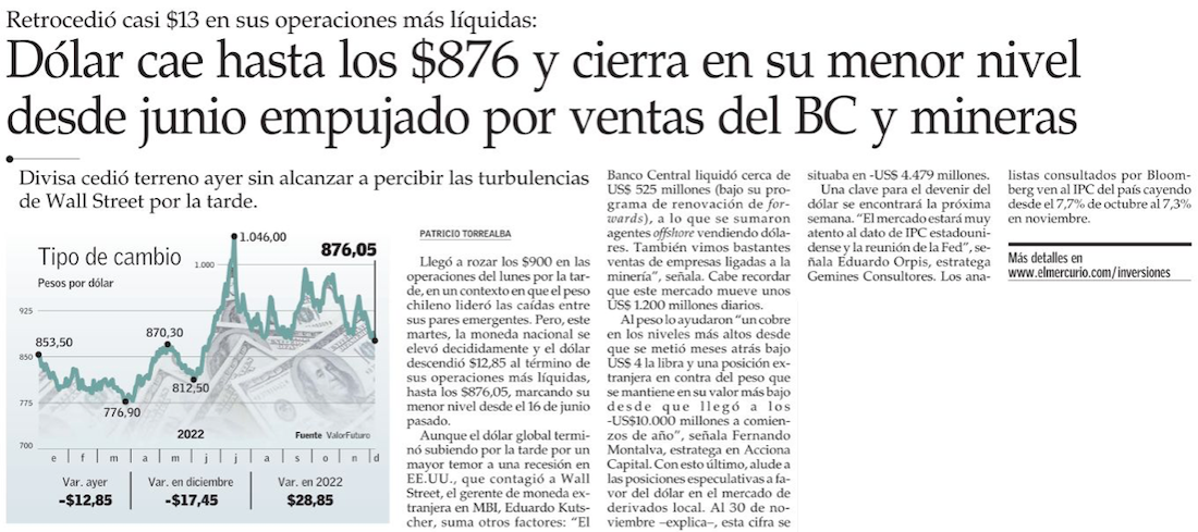 Dólar cierra bajo los $880 y economistas no esperan grandes movimientos tras decisión del BC - (Pulso)