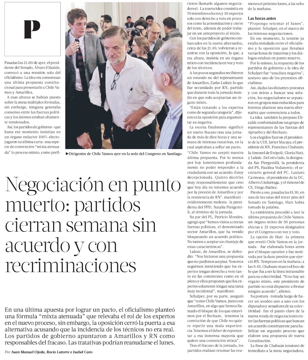 Partidos retoman negociaciones en semana clave para llegar a un acuerdo constituyente - (El Mercurio de Santiago)