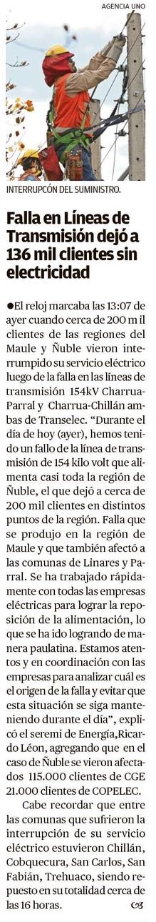CGE informó que corte de luz afectó a 105 mil usuarios de Ñuble y Maule - (La Discusión)