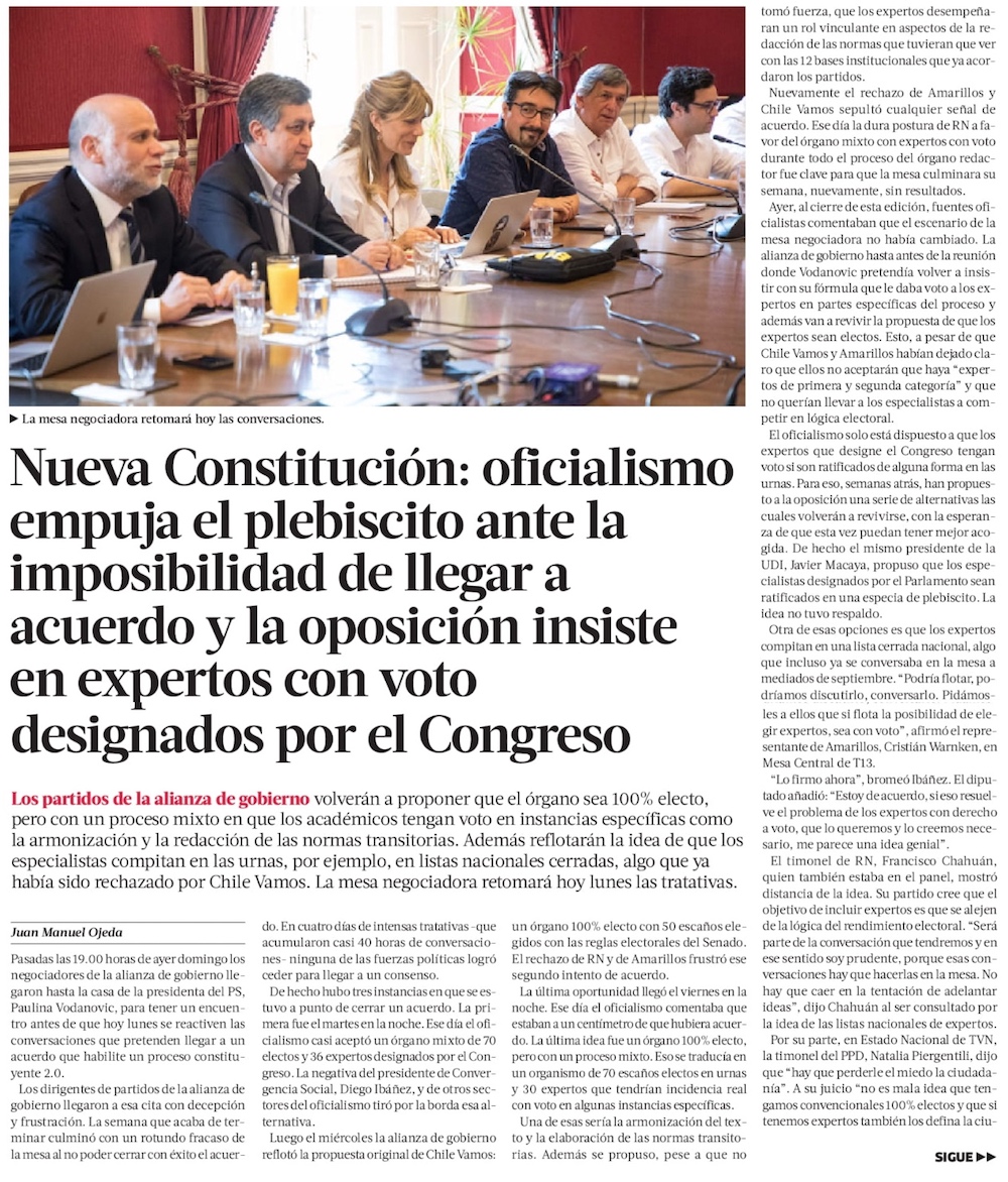 Partidos retoman negociaciones en semana clave para llegar a un acuerdo constituyente - (El Mercurio de Santiago)