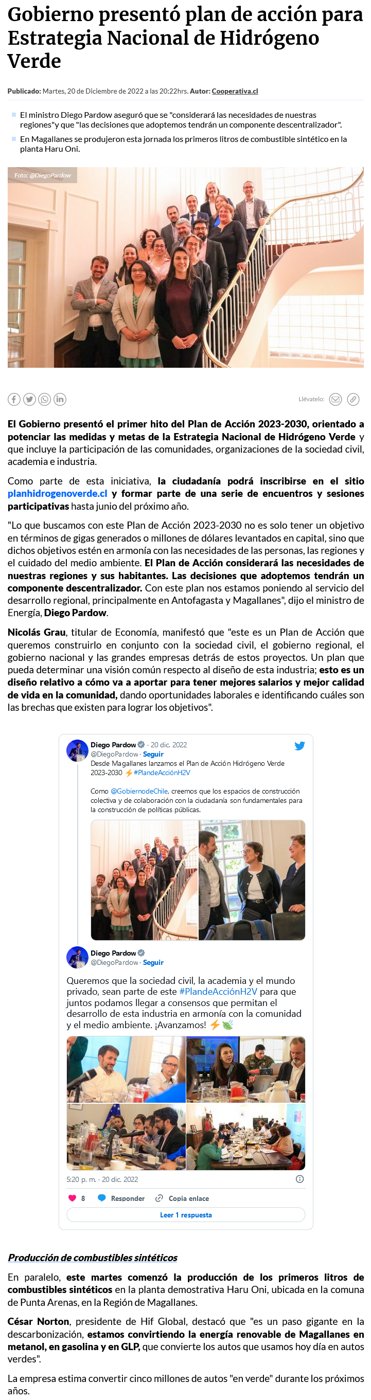Hidrógeno verde: gobierno lanza página web para que la ciudadanía participe en el proceso de desarrollo de la industria - (Pulso Online)