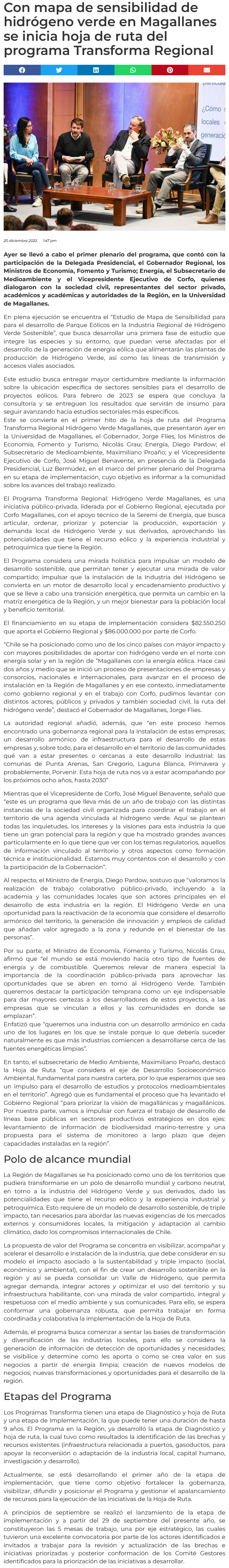 Magallanes: Inició hoja de ruta Programa Transforma Regional Hidrógeno Verde - (h2news.cl)