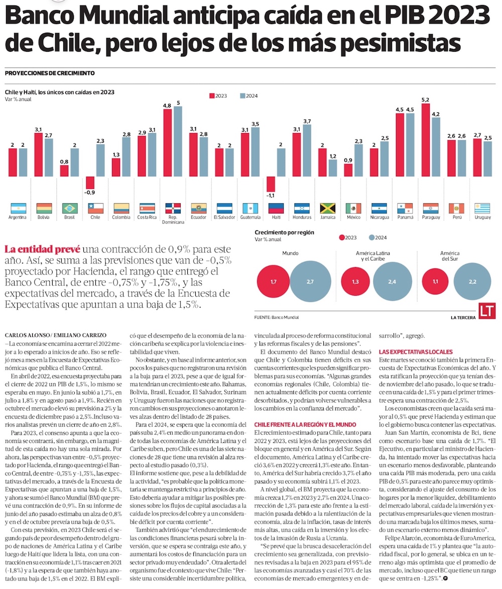 Banco Mundial recorta proyección para PIB de Chile este año y anticipa recuperación recién en 2024 - (Diario Financiero)