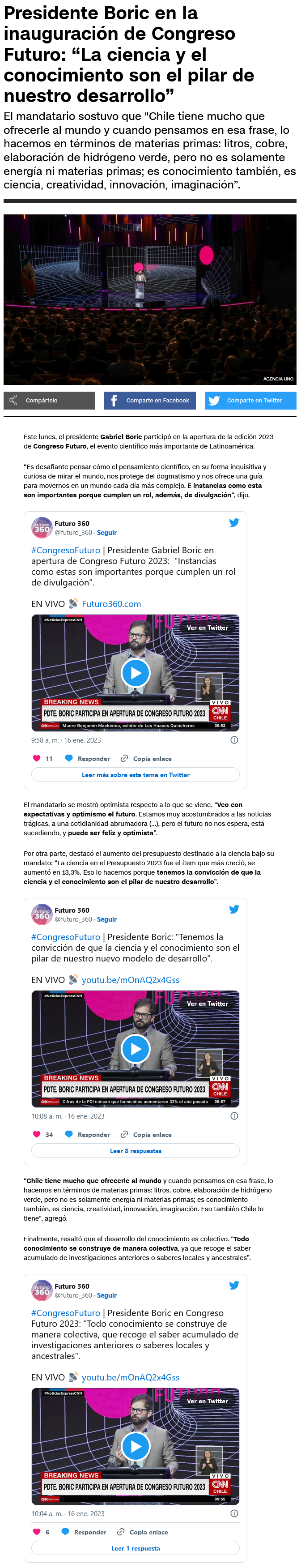 Presidente Boric en Congreso Futuro: "La ciencia nos protege del dogmatismo y nos ofrece una guía para movernos en un mundo cada vez más complejo" - (El Mostrador)