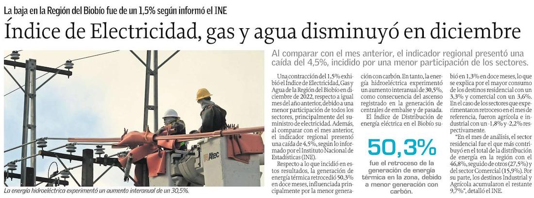 Índice de Electricidad, Gas y Agua de la Región del Biobío disminuyó 1,5% en diciembre - (La Tribuna)