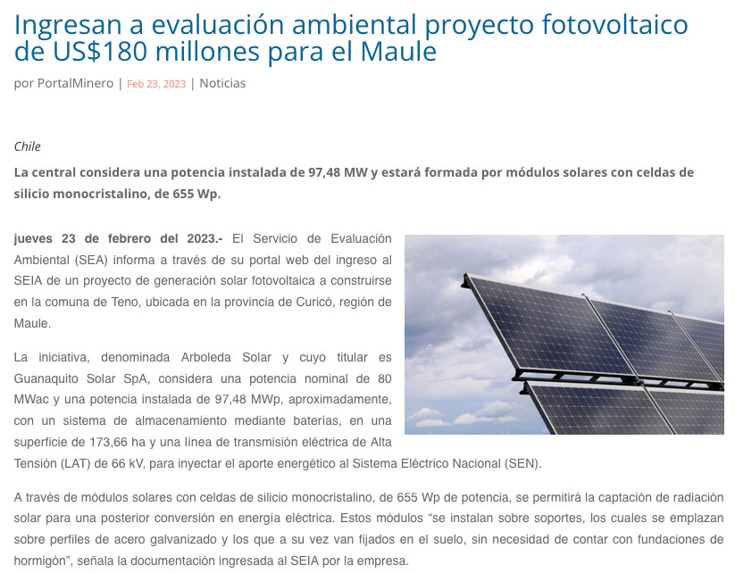 Ingresan a evaluación ambiental proyecto fotovoltaico de US$180 millones para el Maule - (revistaei.cl)