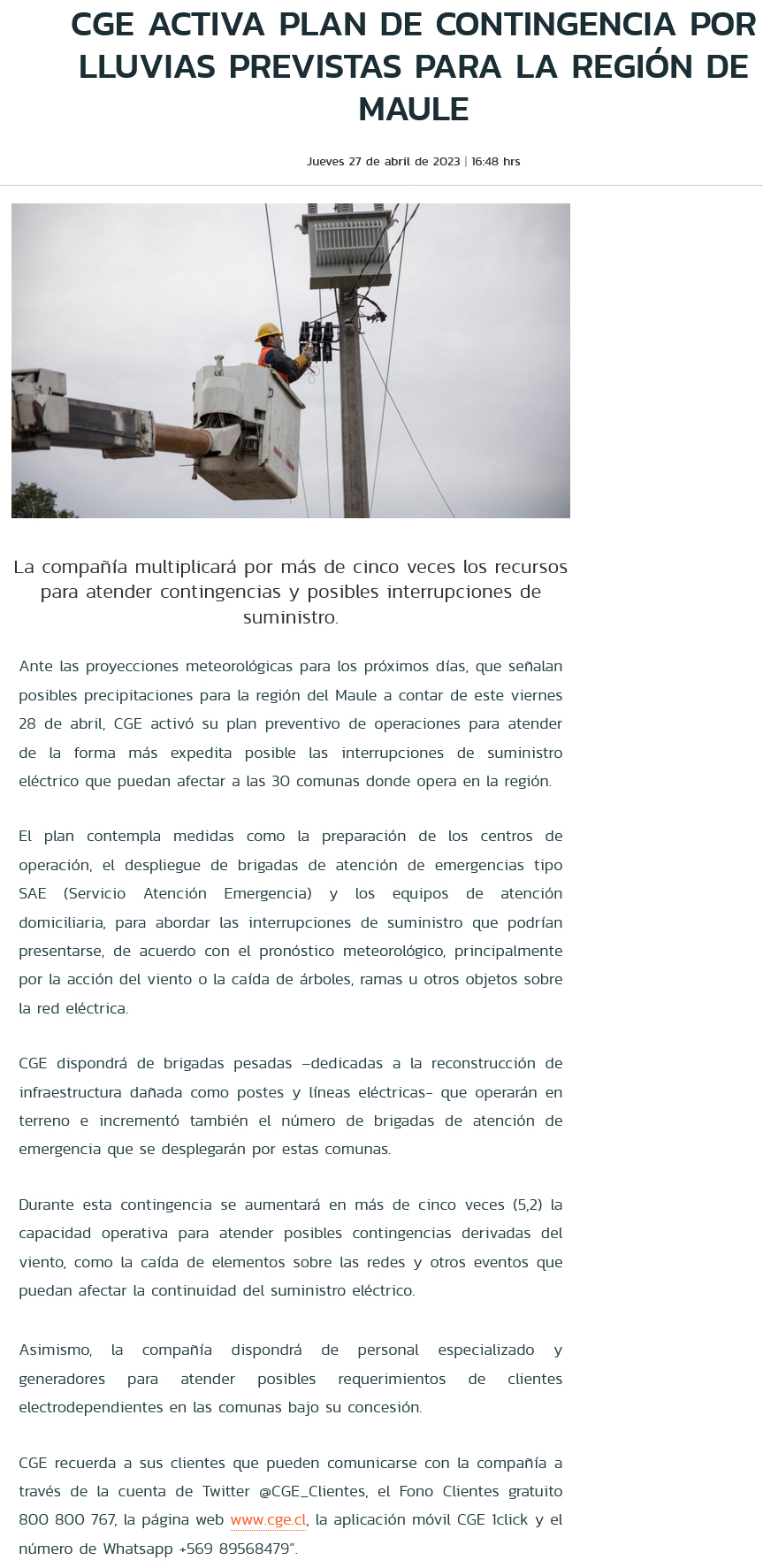 CGE activa plan de acción preventivo ante lluvias que afectarán a la Región del Maule - (El Heraldo (Linares))