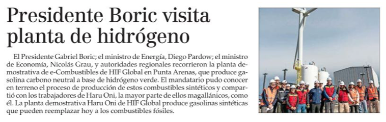 Presidente Boric recorrió la planta HIF de hidrógeno verde - (El Pingüino)