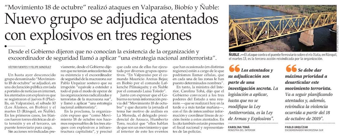 Caso explosivos: Fiscalía suma arista de grupo violentista - (El Mercurio de Valparaíso)