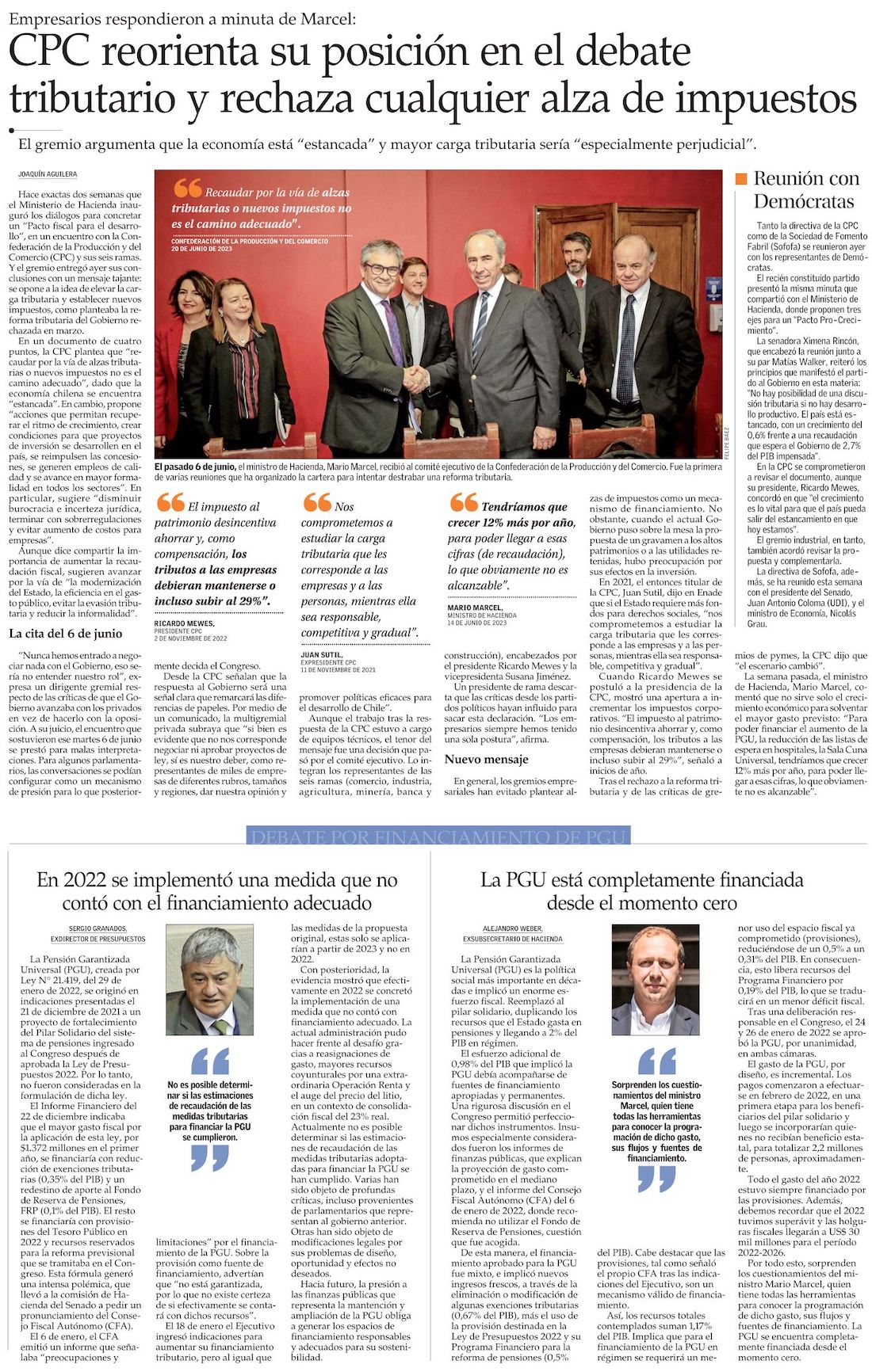 CPC cierra la puerta al pacto fiscal de Marcel: “Recaudar por la vía de alzas tributarias o nuevos impuestos no es el camino adecuado” - (Pulso)