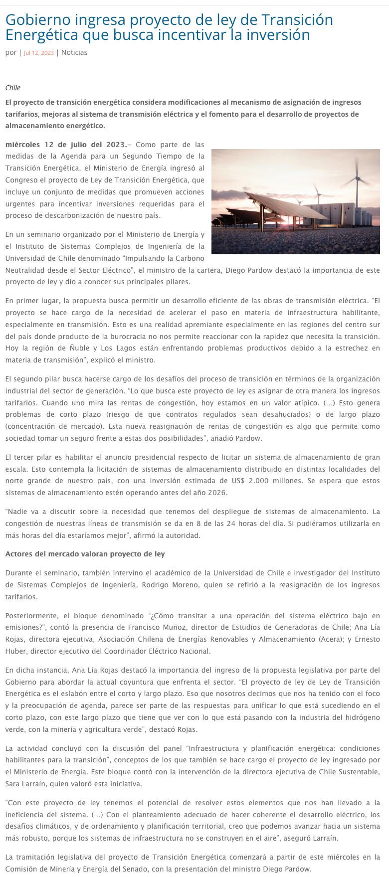 Gobierno presenta el proyecto de transición energética y alista nueva medida en almacenamiento - (chilemineria.cl)