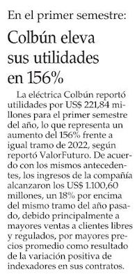 Ganancias de Colbún saltan más de 150% a junio - (Pulso)