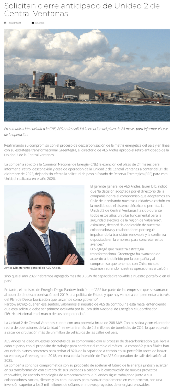 AES Andes solicita retiro anticipado y definitivo de Unidad 2 de Central Ventanas - (radioagricultura.cl)
