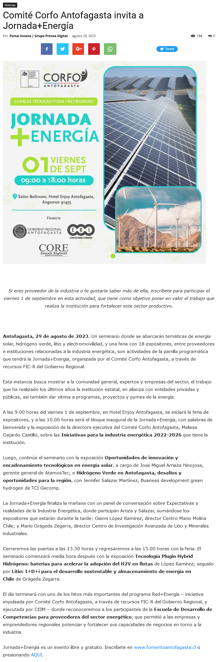 Comité CORFO Antofagasta invita a Jornada+Energía - (antofagastanoticias)