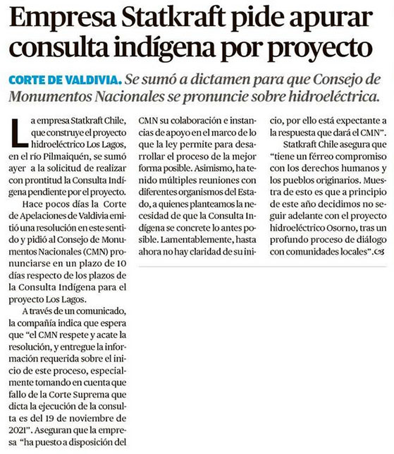 Statkraft Chile y demora en consulta indígena por proyecto en Los Lagos: «Hasta ahora no hay claridad sobre su inicio» - (revistaei.cl)