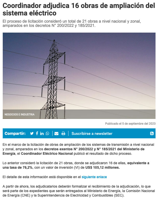 Un total de 16 obras de ampliación del sistema de transmisión chileno son adjudicadas - (revistaenergia.cl)