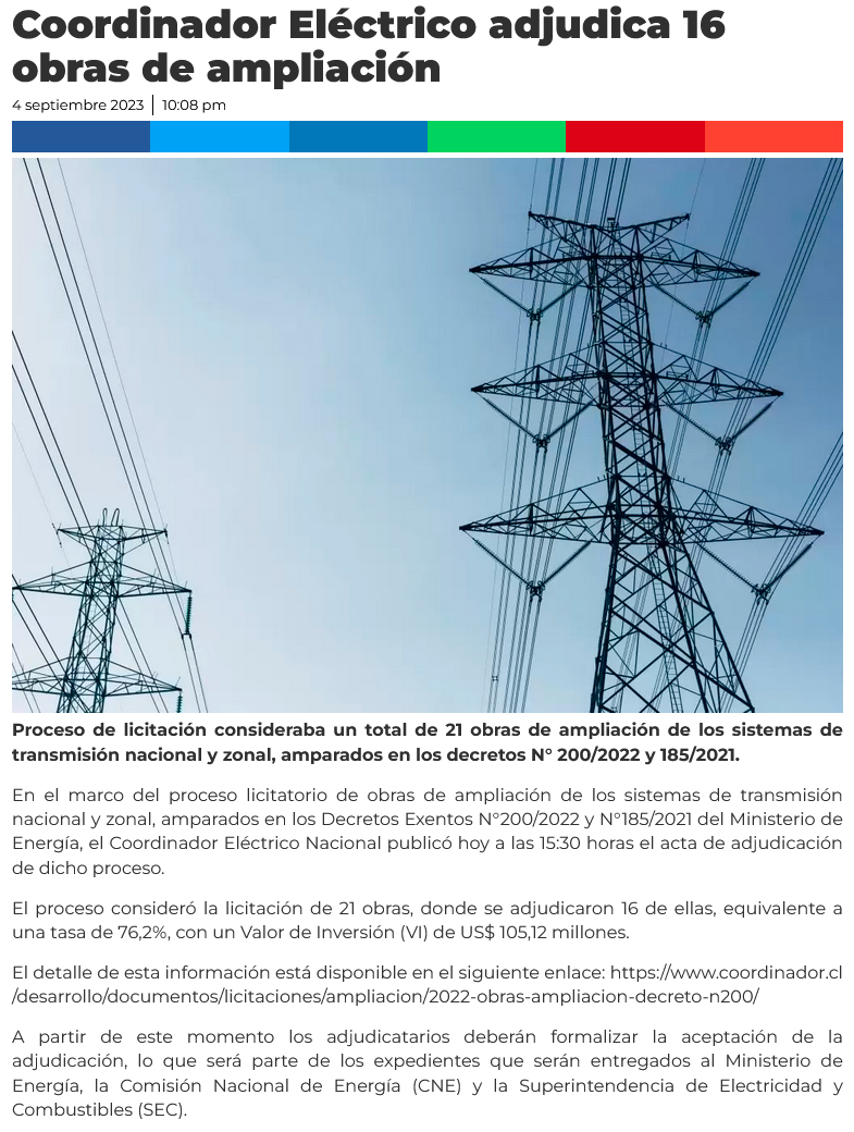 Coordinador adjudica 16 obras de ampliación del sistema eléctrico - (revistaei.cl)