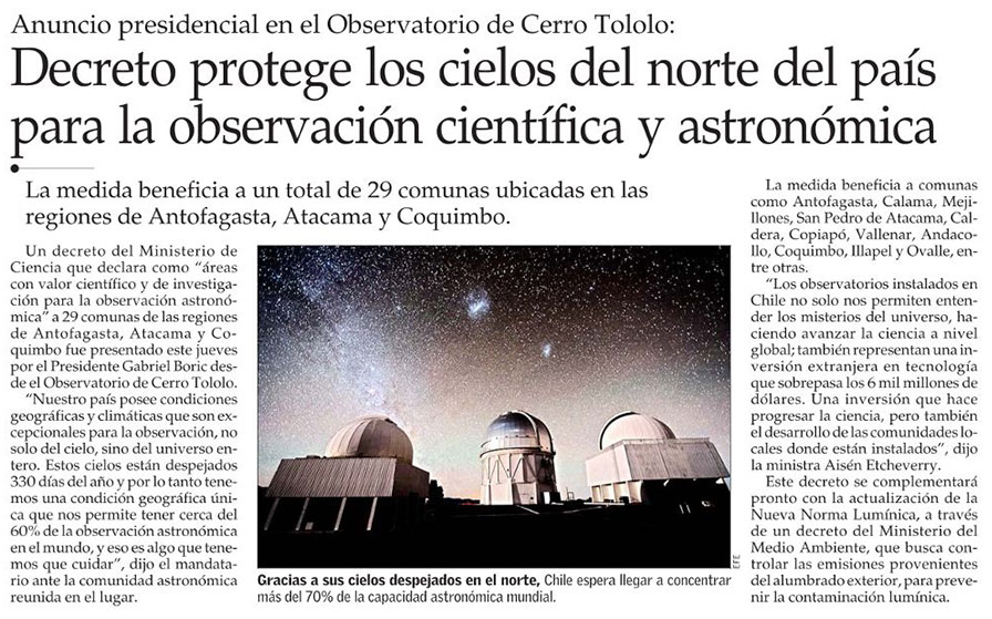Decreto protegerá áreas de valor científico y observación astronómica - (Estrella de Antofagasta)