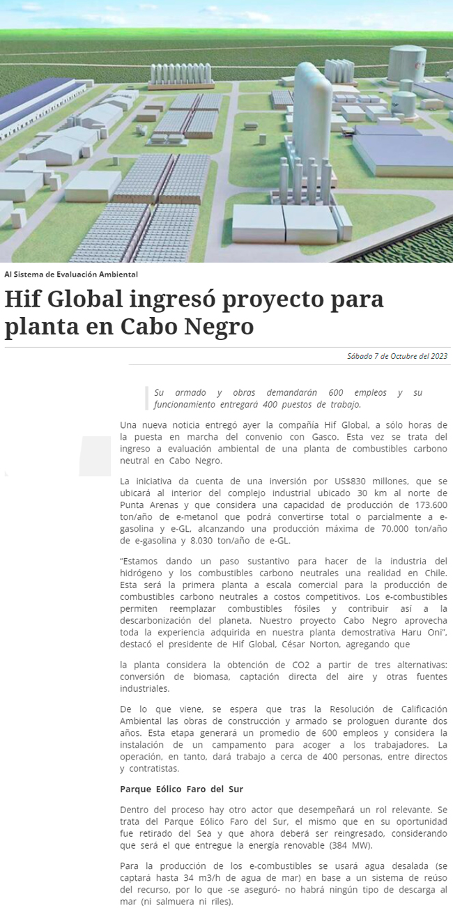 HIF ingresó proyecto por US$ 830 millones - (El Pingüino)