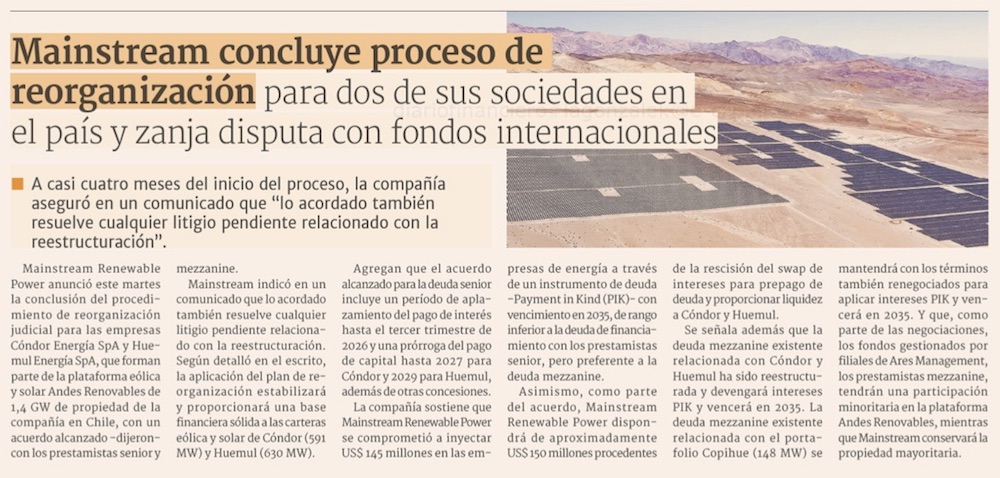 Mainstream concluye proceso de reorganización judicial en Chile - (Pulso)