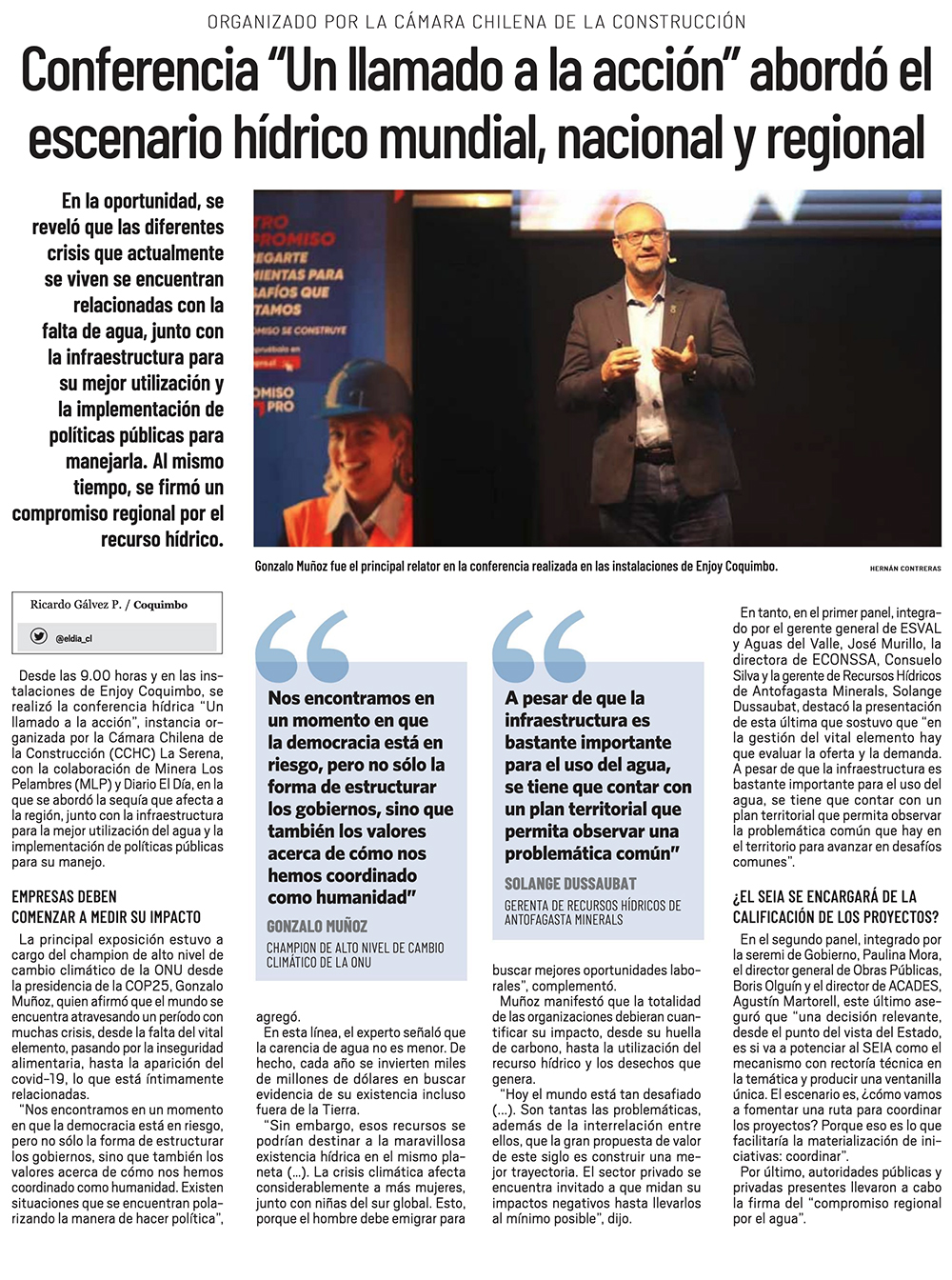 Carretera Hídrica desde Atacama podría llegar a costar el triple que una planta desaladora - (El Día)
