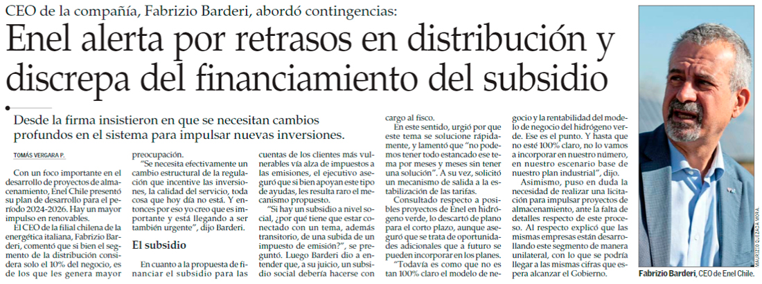 Enel aumenta su plan de inversiones para Chile: US$2.300 millones a 2026 y un 25% irá a almacenamiento - (Pulso)