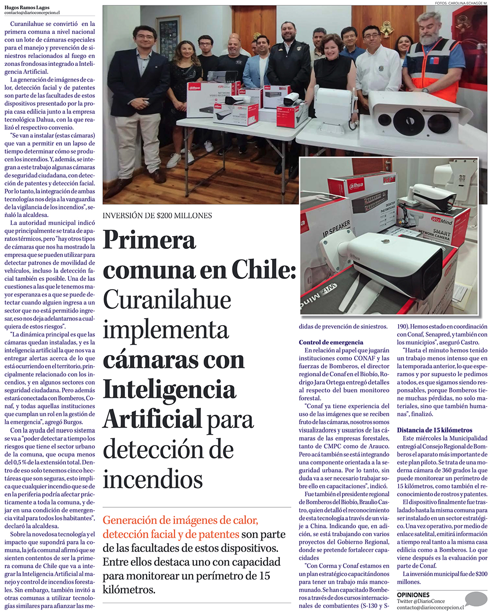 Curanilahue: 5 cámaras con IA apoyarán la detección y prevención de incendios - (El Sur)
