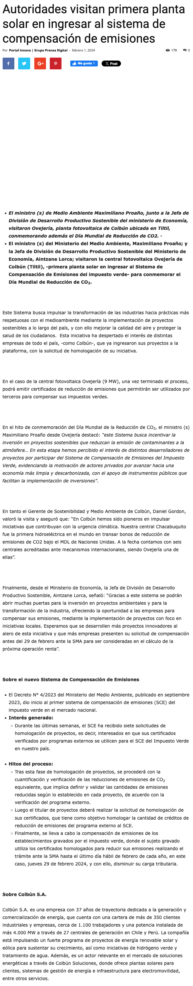 Autoridades visitan primera planta solar en ingresar al sistema de compensación de emisiones - (norteyenegia.cl)