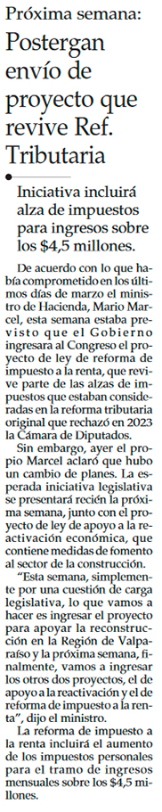 Proyecto antievasión: Hacienda posterga ingreso de indicaciones más polémicas y busca acuerdo - (Diario Financiero)