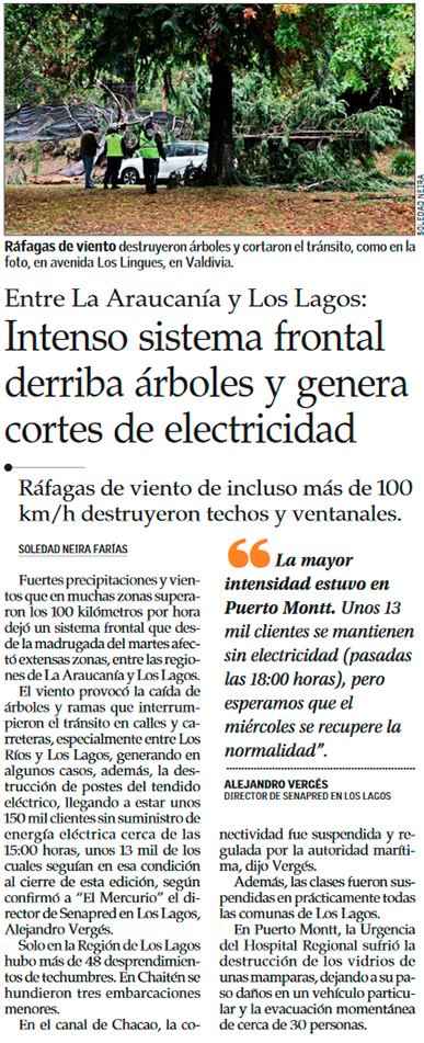 El primer sistema frontal del año provoca daños y apagones - (El Llanquihue)