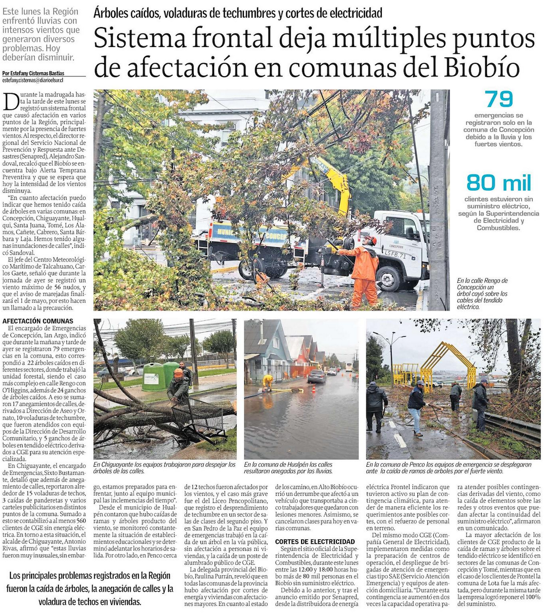 Caída de árboles y 6 mil clientes sin electricidad dejó el sistema frontal - (El Austral de Los Ríos)